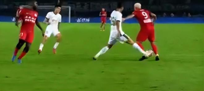 △北京国安队员柏杨犯规“送点”瞬间(视频截图)