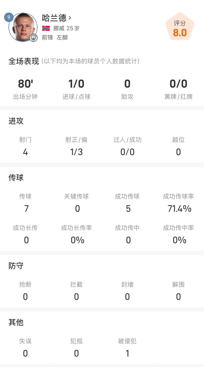 雷速体育9月19日讯 在今日凌晨进行的欧冠联赛首轮,曼城主场对阵那不勒斯。前锋哈兰德首发出场80分钟,打入全场第一粒进球,帮助球队首开纪录,并解锁了自己的欧冠50球里程碑。