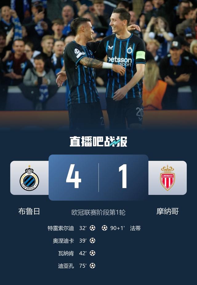 布鲁日4-1摩纳哥,这支比利时队伍在主场打出亮眼表现。客队方面,法蒂攻入世界波不过对局面于事无补。