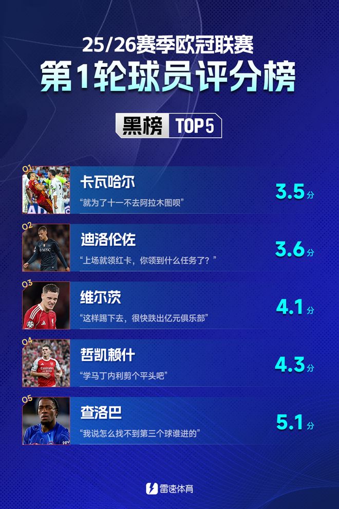 雷速体育9月19日讯 新赛季欧冠联赛阶段结束首轮争夺,36支球队悉数登场,哪些球员给你留下深刻印象?一起来看看雷速体育第一期欧冠红黑榜有哪些球员上榜吧~