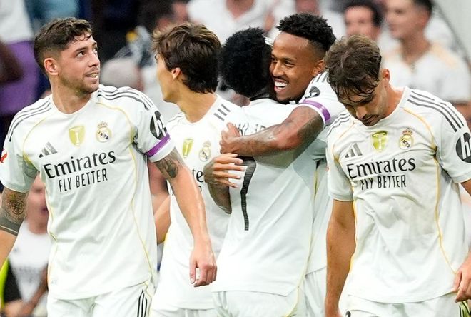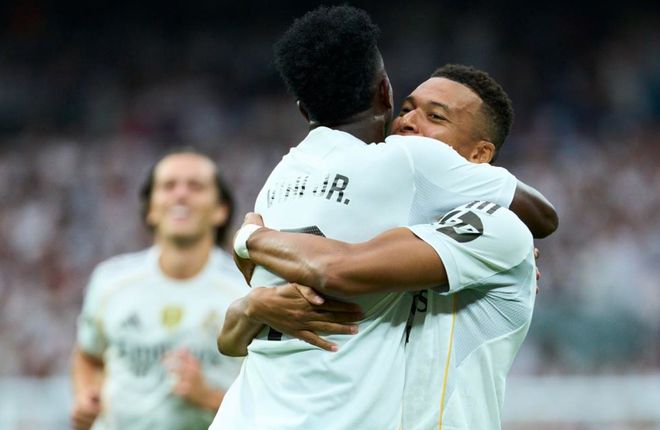 皇马排出442阵型。姆巴佩和贡萨洛-加西亚搭档双前锋。维尼修斯、楚阿梅尼、巴尔韦德和马斯坦托诺联袂出击。卡瓦哈尔、阿森西奥、米利唐和阿尔瓦罗-卡雷拉斯4后卫首发出战。库尔图瓦担任首发门将。罗德里戈、恩德里克和贝林厄姆坐在替补席待命。