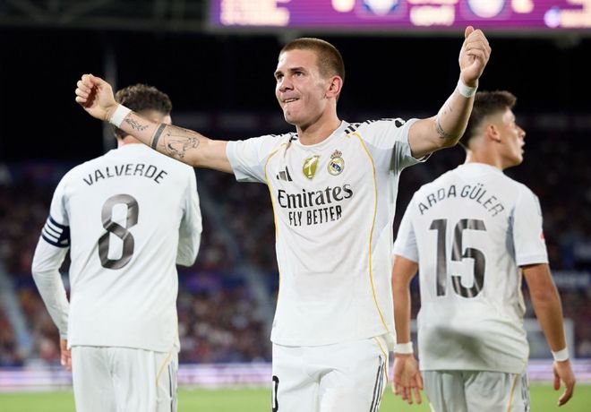 为了能够顺利在客场拿下莱万特,阿隆索也放弃了上一轮踢西班牙人的442阵型,让球队改打3421体系,首发门将库尔图瓦,劳尔阿森西奥、赫伊森和卡雷拉斯构筑后防,马斯坦托诺、巴尔韦德、塞巴略斯和加西亚坐镇中场,居勒尔和维尼修斯搭档双前腰,单箭头则是姆巴佩。