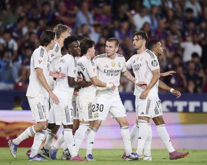 北京时间9月24日,西甲第6轮,皇马客场对阵莱万特。本场皇马的2名锋线球星站了出来,姆巴佩独中两元,维尼修斯传射,帮助皇马4-1大胜对手,18岁的马斯坦托诺打进皇马生涯处子球。枯坐板凳!皇马21岁前锋受委屈:夺得世俱杯金靴,却被阿隆索弃用。