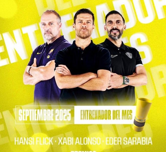西甲官方公布了9月最佳主教练候选:阿隆索、弗里克、埃德-萨拉维亚。