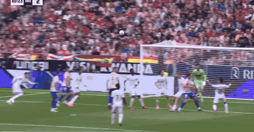 下半场踢了5分钟,皇马遇到了麻烦,阿尔瓦雷斯开出战术角球,冈萨雷斯抢点,居莱尔解围落地时,蹬踏了冈萨雷斯的面部,裁判判罚点球。阿尔瓦雷斯操刀,一蹴而就,打进最近2场的第4球。