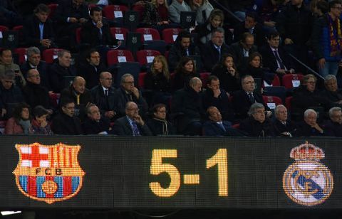 18/19赛季首回合西班牙国家德比,皇马客场挑战巴萨,苏亚雷斯上演帽子戏法,库蒂尼奥、比达尔分别进球,皇马最终1-5惨败。