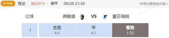 竞足 周日019 德甲 弗赖堡VS霍芬海姆