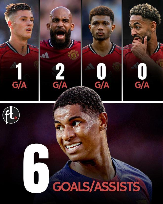 据统计,拉什福德本赛季代表巴萨各项比赛已打入2球并且送出4次助攻,共参与进球数6球。而曼联锋线(谢什科、库尼亚、姆巴莫、迪亚洛、齐尔克泽)五名球员合计共参与进球数仅3球。