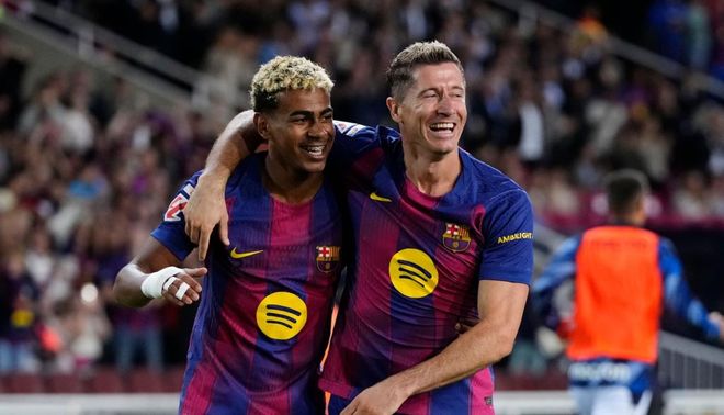 下半场易边再战,巴塞罗那进行换人调整,奥尔莫替补上场,换下德罗-费尔南德斯。第48分钟,赫拉德-马丁起脚远射,皮球稍稍偏出左侧立柱。第58分钟,巴塞罗那继续换人,亚马尔替补上场,换下巴尔德吉。这次换人起到了立竿见影的效果。只过了1分钟,亚马尔就送出助攻,莱万多夫斯基头球顶进!巴塞罗那反超比分!