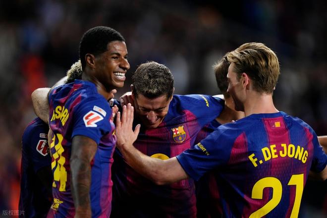 落后的巴萨随后展开更猛烈的攻势,第38分钟,巴萨全线压上,孔德右路下底传中,祖贝迪亚回防解围就像是抢点挡射一般,皮球直向大门飞去,门将雷米罗反应神速将球扑出。上半时尾声阶段第42分钟,巴萨左侧角球机会,拉什福德操刀主罚兜传前点,孔德力压防守球员回头望月甩头攻门,皮球应声入网,巴萨半场结束前1:1扳平比分。易边再战巴萨继续加强进攻,只不过攻了十多分钟仍没有进球,第57分钟,亚马尔替补登场。亚马尔上场不到1分钟就在右路制造杀机,亚马尔禁区角上强行突破杀入禁区倒三角挑传门前,莱万小禁区线上抢点强力头槌攻门,BOOM的一声皮球击中门柱内侧弹入网窝,巴萨2:1反超比分。