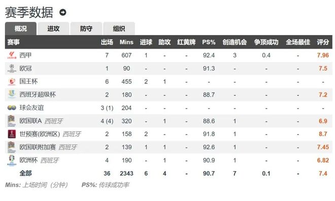 当然,他打出的数据也是足够精彩,在整场比赛中贡献133次触球的情况同时有4次过人成功,在防守方面14次跟皇家社会的对抗、拿到了8次的成功;114次传球成功率达到了92.1%,除此之外在进攻方面提供了两次绝佳的机会制造,防守方面还贡献了2个解围和2个抢断。虽然5次被过的,不过考虑到巴萨大部分时间、都是靠他自己来支撑后腰位置的。再加上攻防转换的任务很重的、因此也算不上多。