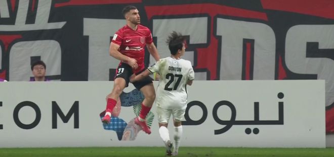 第27分钟,场上发生了一个非常有趣的一幕。当时成都队外援古尔芬顾尔在一次拼抢中高高跃起,但就在他下落的一刹那,江原FC球员跑到身边,手臂不慎打到了古尔芬克尔的“小鸟”部位,这次“掏鸟”的动作还险些配成了冲突。其实大可不必这样,对方球队也不是故意的。更何况,也只是不小心轻轻的碰了一下而已。