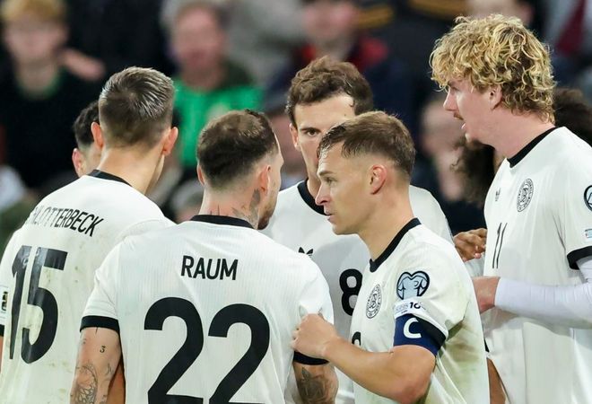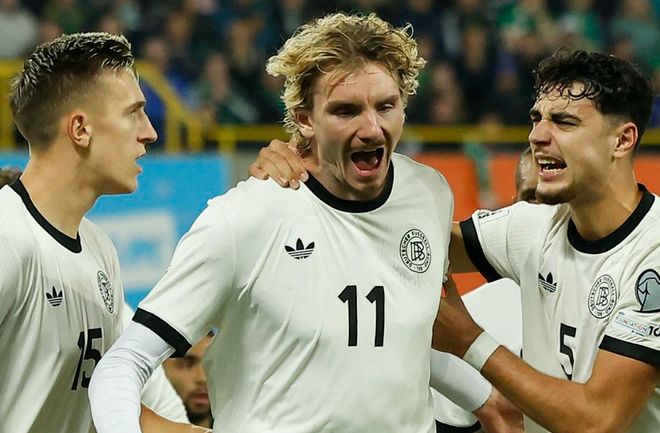 德国队排出4141阵型。沃尔特马德顶在最前面。维尔茨、格雷茨卡、格纳布里和阿德耶米的进攻组合联袂出击。帕夫洛维奇单后腰。劳姆、施洛特贝克、约纳坦-塔和基米希4后卫首发出战。奥利弗-鲍曼担任首发门将。德国队首发阵容总身价4.52亿欧元。而北爱尔兰首发阵容总身价只有5710万欧元。