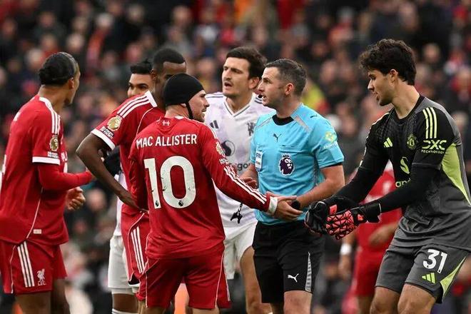 比赛伊始,曼联就死攻利物浦左路:阿玛德与姆贝乌莫轮番冲击凯尔凯兹与范戴克之间的空当,BBC嘉宾斯蒂芬·沃诺克直言两人“毫无默契”。下半场的一幕堪称红军当下困境的缩影:范戴克解围曼联传中时一脚踢疵,皮球重重砸在凯尔凯兹脸上,万幸最终高出门楣。荷兰队长当场朝凯尔凯兹摊手怒吼,示意后者该提前喊位。失误本是范戴克自己,但情绪爆发却意味深长——他对球队目前的防守站位显然极度不满。