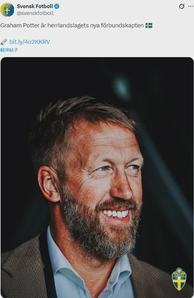 据悉,波特签下了一份短期合同,他将带队出战下个月对瑞士以及斯洛文尼亚的比赛,以及明年三月份的附加赛,假如瑞典能闯进世界杯,那么合同将被延长。