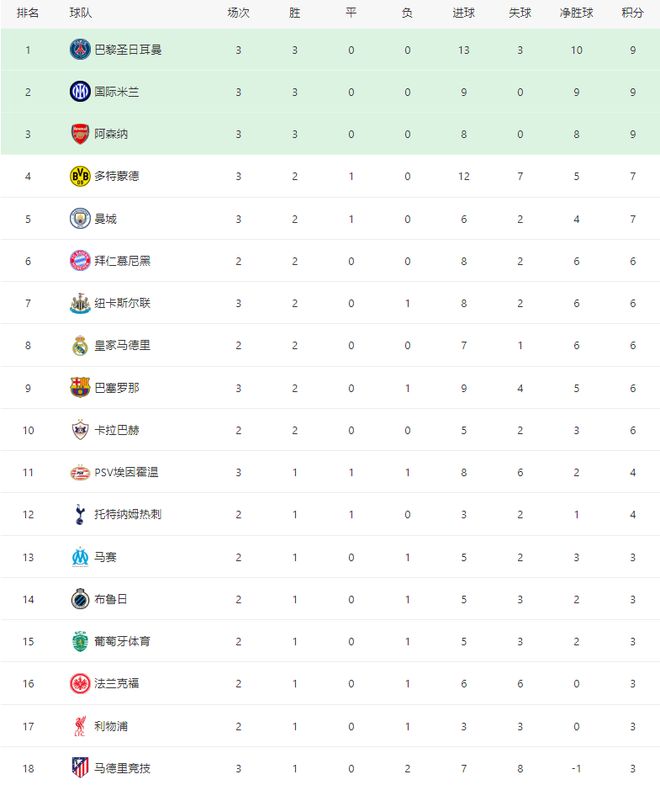 其他几场比赛,曼城客场2-0完胜比利亚雷亚尔,阿森纳主场4-0大胜马竞,巴黎客场7-2大胜勒沃库森,国米客场4-0大胜圣吉罗斯,多特客场4-2击败哥本哈根,本菲卡客场0-3惨败纽卡斯尔,那不勒斯客场2-6惨败埃因霍温,九场比赛总共打进45球,太疯狂了。