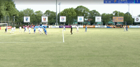 第26分钟,陈伟杰禁区内肘击对手,被主裁判出示第二张黄牌染红离场,场上形成10打10的局面。半场补时第1分钟,梁珈豪单刀突入禁区之后面对出击的门将挑射破门,3:1!上海申花扩大比分。半场结束,上海申花带着3:1的比分进入更衣室。