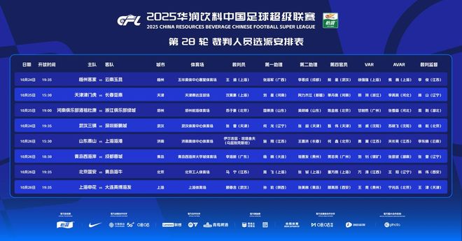 长春亚泰客场面对天津津门虎的比赛,沈寅豪担任主裁,邢琦则担任VAR。其他对决中,王迪执法梅州客家和云南玉昆的比赛,苏子豪执法河南队主场和浙江队的比赛。