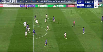 补时阶段第90+5分钟,胡安-卡米洛无法坚持,谭龙替补上场。第90+7分钟,王智峰抽筋了。第90+10分钟,津门虎角球进攻,亚泰门前乱战,亚泰球员解围打在横梁下弹出,谢文军推空门得手,打进绝平进球,2-2!