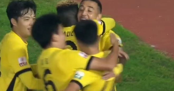 比赛的第22分钟,德尔加多边线控球失误,杨希断球斜传,阿齐兹禁区右肋扣过后卫之后横传,戴维森将球推入空门,西海岸取得领先。在对手破门之后,刘殿座一脸无奈。