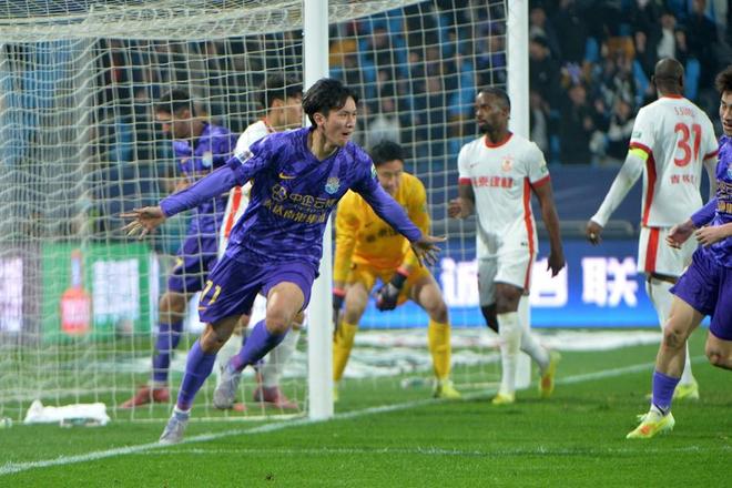 伤停补时第10分钟,谢维军(左)的进球帮助津门虎战平长春亚泰