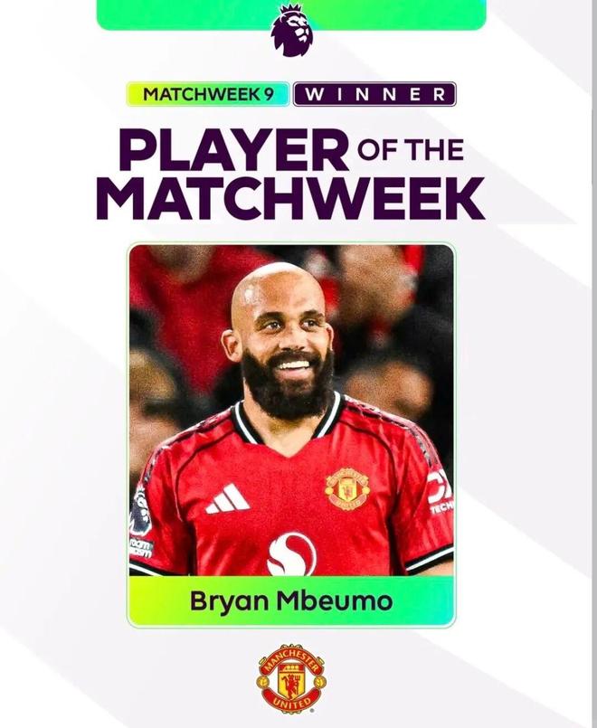 姆伯莫当选第9周英超最佳球员!