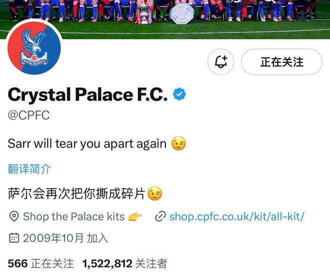 雷速体育10月31日讯 在联赛杯3-0击败利物浦后,水晶宫俱乐部官方社媒修改简介,再次调侃了对手。
