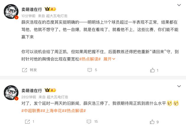 “卖萌谁在行”也对此予以证实:“薛庆浩现在的态度其实挺明确的——明明场上11个球员超过一半表现不正常,结果都在骂他,他就不想守了。他一自爆,就是在看戏了,就看他不上,这些比赛,你们能不能赢下来!”