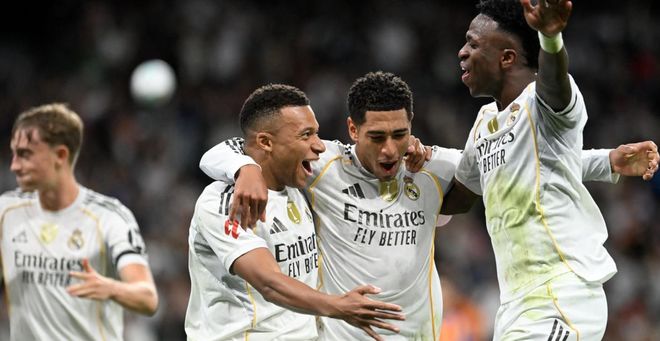 第31分钟,皇马再次进球!依然是姆巴佩的进球,他接到居莱尔的传中球,垫射破门,完成梅开二度!第42分钟,皇马再次获得点球机会。这一次是维尼修斯主罚,结果他罚丢了。第44分钟,贝林厄姆在禁区外低射远角,球进了!比赛彻底失去悬念。补时阶段,居莱尔推射软绵无力,门将把球扑住。半场结束,皇马3-0领先瓦伦西亚。