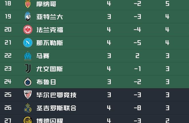 北京时间11月5日,2025-26赛季欧冠联赛阶段第4轮先赛9场。两支出战的意甲豪门那不勒斯和尤文图斯都未能取胜,4轮过后已经逼近淘汰区。