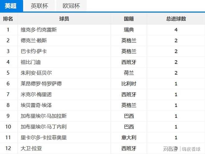 阿森纳的队内射手榜,约克雷斯以4个进球排在第一名,随后的赖斯、萨卡、苏比门迪和廷贝尔等都是2球,剩下多名球员各进1球。看得出来,阿森纳进球分布很广,一共有11人取得进球,多点开花的确可以让对手防不胜防。只是,作为头号射手的约克雷斯,只能并列在英超射手榜的第6名到第13名,并没有十分突出的高效射手,跟葡萄牙体育时期,相差甚远。