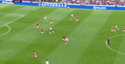 曼联的进攻连续施压,多古左路传中,热刺解围之后,曼联组织二次进攻,库尼亚传球,迪亚洛再次传中,姆贝莫头球攻门得手,曼联1-0领先!