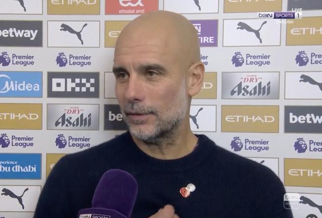 英超第11轮,曼城主场3-0大胜利物浦,赛后,瓜迪奥拉接受了拜因体育的采访。