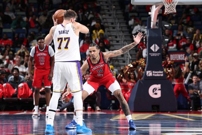 东契奇24+7+12创NBA历史第1神迹,艾顿11中10创纪录,湖人完胜鹈鹕!里夫斯31+7!