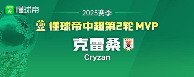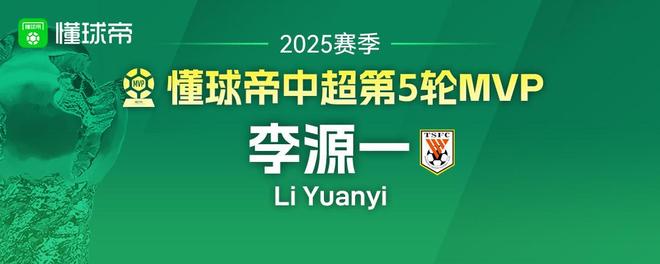 2025赛季懂球帝中超全部30轮MVP一览:五人三次当选并列最多