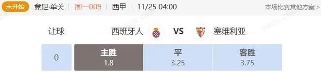 竞足 周一009 西甲 西班牙人VS塞维利亚