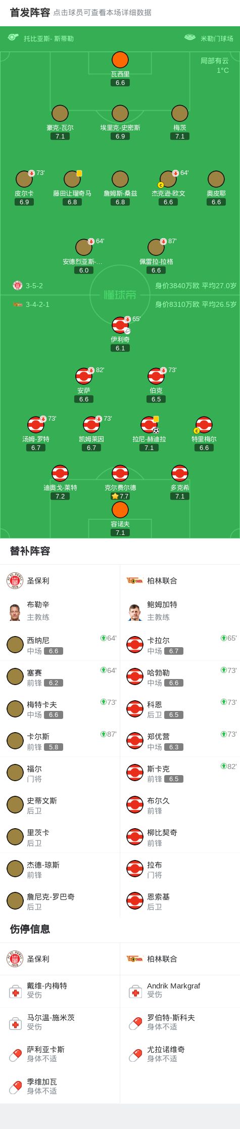 北京时间11月24日,德甲联赛第11轮,圣保利坐镇主场迎战柏林联合。比赛中,伊利奇送出关键助攻,帮助拉尼-赫迪拉攻入全场唯一进球。凭借此球,柏林联合客场1比0战胜圣保利,全取三分。