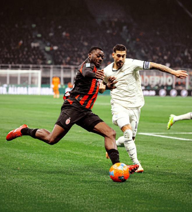 易边再战,拉齐奥率先制造杀机,第49分钟扎卡尼左路接到队友下底传中后,完成了一脚捅射,不过门前被托莫里解围,4分钟之后,托莫里又在进攻端送出助攻,右路下底横扫门前,莱奥门前包抄破门,帮助AC米兰取得了1-0的领先,这也是红黑军团这一场比赛第一脚中目标的射门。