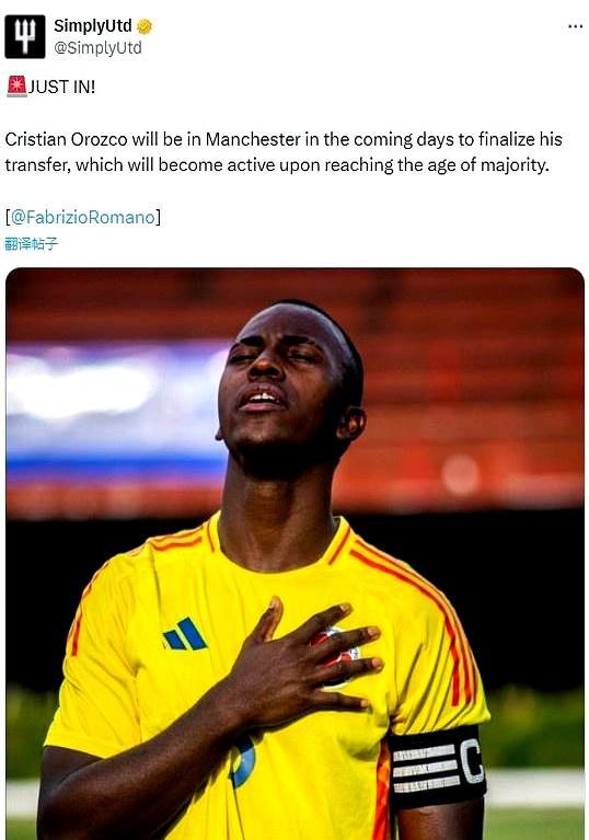 根据罗马诺给出的消息,虽然、在此之前包括阿莫林和拉特克里夫等高层集体表态,曼联不会在冬季转会窗有太大的动作。不过、他们已签下了一名年轻的哥伦比亚中场,他极有可能会是阿莫林在接下来着力培养的选手。