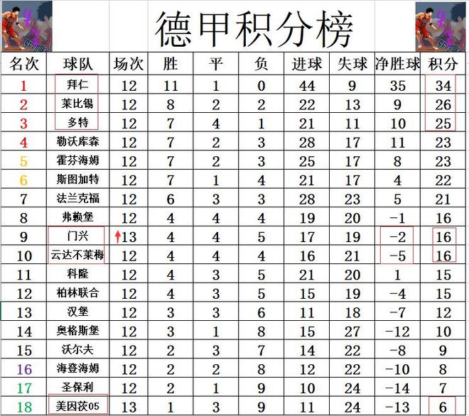 德甲最新积分战报输给拜仁后4胜1平门兴5轮不败冲进上半区