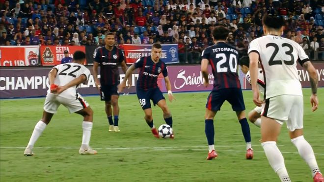 第24分钟,柔佛新山定位球罚到禁区,对手连续尝试射门,均被陈威神勇化解。第32分钟,柔佛新山前场打出精妙配合,雅伊罗传中,因萨劲射被陈威扑出!随后角球中,贝格松凌空抽射,再次被陈威拒之门外。陈威神级的表现,令对手的进攻一次次无功而返。