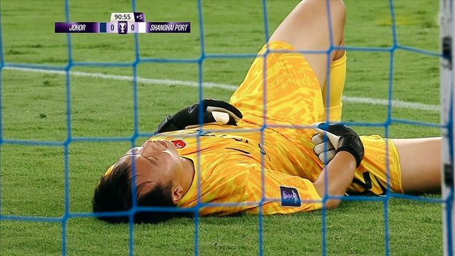第73分钟,上海海港禁区出现重大失误,阿布拉罕倒地,纳乔门德斯推射空门击中立柱,弹到陈威身上,擦着立柱偏出!上海海港再度逃过一劫。没有任何的喘息,柔佛新山抓住一切机会进攻,经过长达10分钟的补时,最终上海海港艰难守住了一场平局。