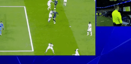 第43分钟,后防线缺兵少将的皇马,盯防上出现错误。吕迪格防倒了哈兰德,经过VAR回看,确定这是点球。