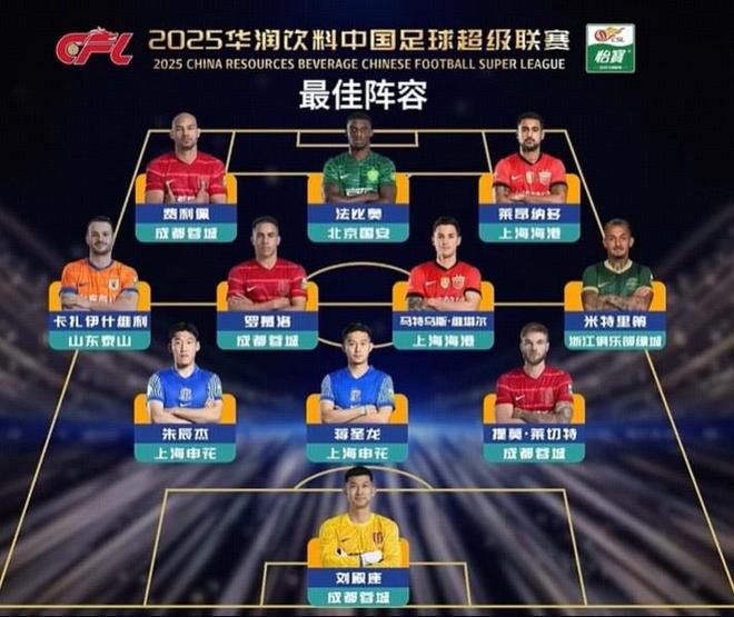 2025赛季中超最佳阵容:法比奥、瓦科领衔,蒋圣龙、朱辰杰入选