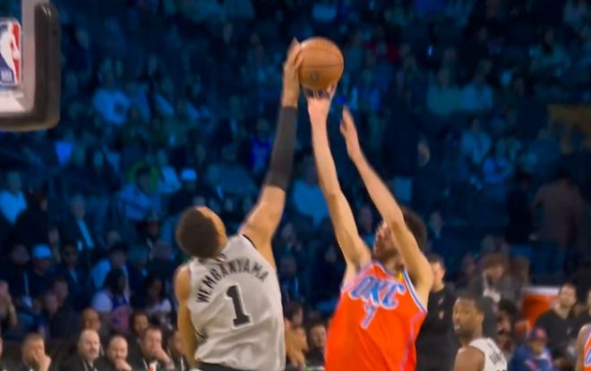 文班亚马时隔12场复出,且NBA生涯首次担任替补,他在首节未出战情况下,后三节用出色的攻防表现,率领马刺4人得分20+,惊险完成16分逆转终结雷霆16连胜,从而队史首次晋级NBA杯决赛。