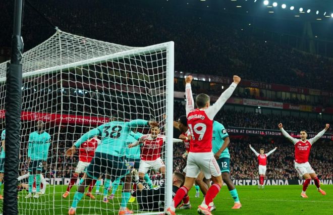 阿森纳在主场踢出了神剧情,以2-1险胜狼队。面对垫底队,本以为这场比赛阿森纳会赢得比较轻松,结果没想到会赢得这么侥幸。虽然阿森纳占据场面优势。但是,阿森纳直到第70分钟才取得进球。萨卡的角球制造门将的乌龙球。门将的表现在此之前很出色,结果却出现了无奈的乌龙球。第90分钟阿罗科达雷头球顶进,扳平比分。本以为阿森纳会就此丢分。没想到第94分钟,狼队再次送上乌龙球。莫斯克拉乌龙球送礼,帮助阿森纳完成绝杀好戏。真是太不可思议了!
