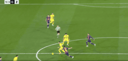 第32分钟,德容的传中被门将挡了出来,亚马尔禁区外原地起脚,皮球稍稍高出。