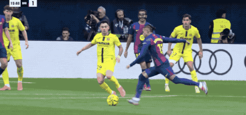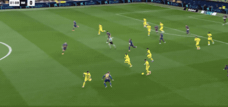 第7分钟,巴萨传球再次被断,比利亚雷亚尔如法炮制,佩雷斯张弓搭箭,拉菲尼亚和孔德合力完成关键封堵。