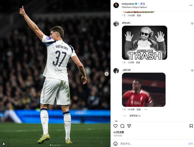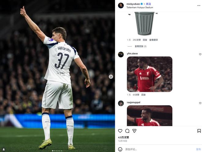 在周日凌晨进行的英超第16轮比赛中,热刺主场1-2不敌利物浦,其中伊萨克在进球后被范德芬犯规放倒,无法继续坚持比赛被换下场,赛后,范德芬的社媒遭到了许多利物浦球迷的攻击。
