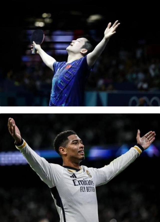 身为忠实皇马球迷,樊振东曾多次在赛场上模仿皇马球星的庆祝方式,包括C罗、姆巴佩、贝林厄姆。